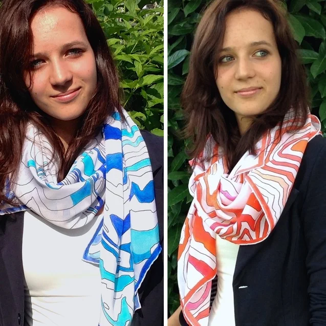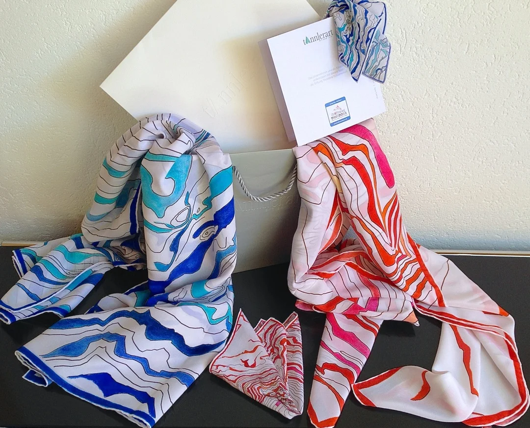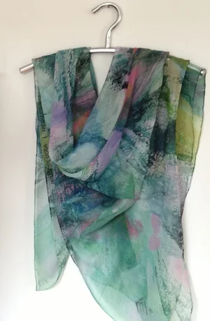 Kunstdruck auf reiner hochweisser Seide Crêpe de Chine, handrouliert, mit charity card, edel verpackt, zugunsten der Stiftung Theodora (20 % des Verkaufspreises)